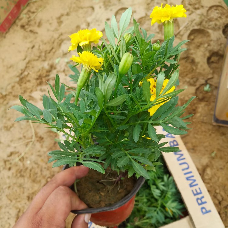 孔雀草(拉丁学名:Tagetes patula L.)菊科、万寿菊属一年生草本植物。茎直立,分枝斜展。叶羽状分裂,头状花序单生,管状花花冠黄色,瘦果线形,花期7-9月。