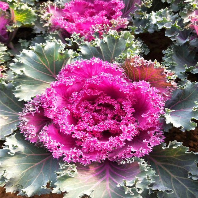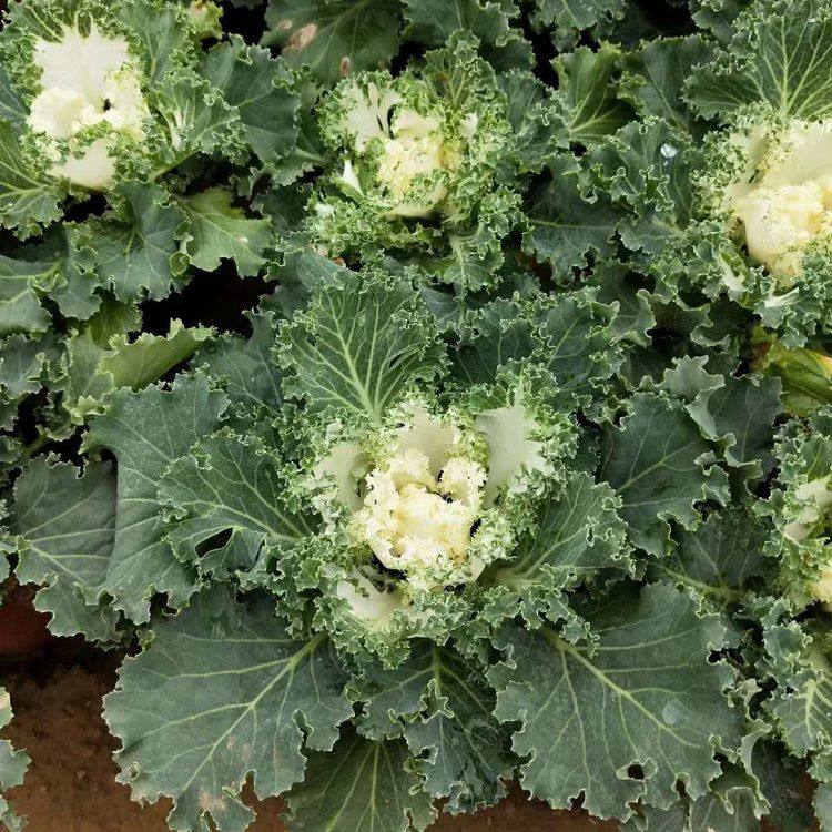 叶片形态美观多変,心叶色彩绚丽如花,整株酷似一朵盛开的牡丹花,人们形象地称之为“叶牡丹”。又因其喜冷凉气候,较耐寒,可忍受多次短暂的霜冻,在百花凋零的冬季和早春,是布置露地花坛、花台及盆栽陈设美化时不可多得的优秀用材。
